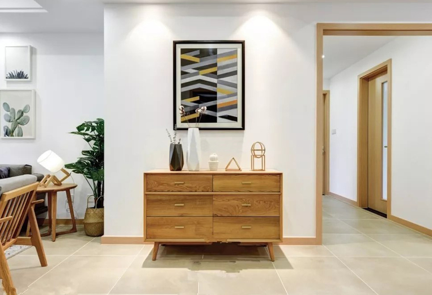 五、裝飾物:玄關不僅要考慮其功能性,裝飾性也不能忽視。陶雕花瓶、幾枝干花,就能為玄關烘托出非同一般的氣氛。