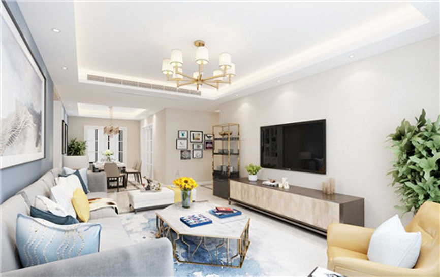 2. 電視背景墻的燈光運用也是需要特別注意的,可以通過多個角度的照明運用,來進行空間的布局安排,當然天花照明也是需要考慮好的。盡量使用接近自然光的燈具,燈光應當協調,這樣客廳裝飾效果更具加自然溫馨,而且對用戶的眼部有一定的保護作用。