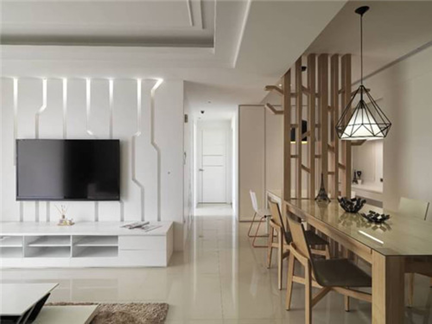 3. 現代裝修中,講究質感的突出,其中白色是風格最常用的色彩,不僅增加室內光亮度,而且有利于室外陽光的撒入。因此很多電視背景墻往往采用最簡單的裝飾手法,通過線條的變化,產生律動感,讓空間看起來更加有趣。
