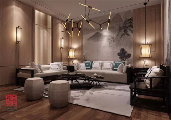 1、偏亮暖木棕基調襯托出家居元素質感,剛柔并濟不失優雅,將古典元素融入現代裝飾,寧靜而致遠。