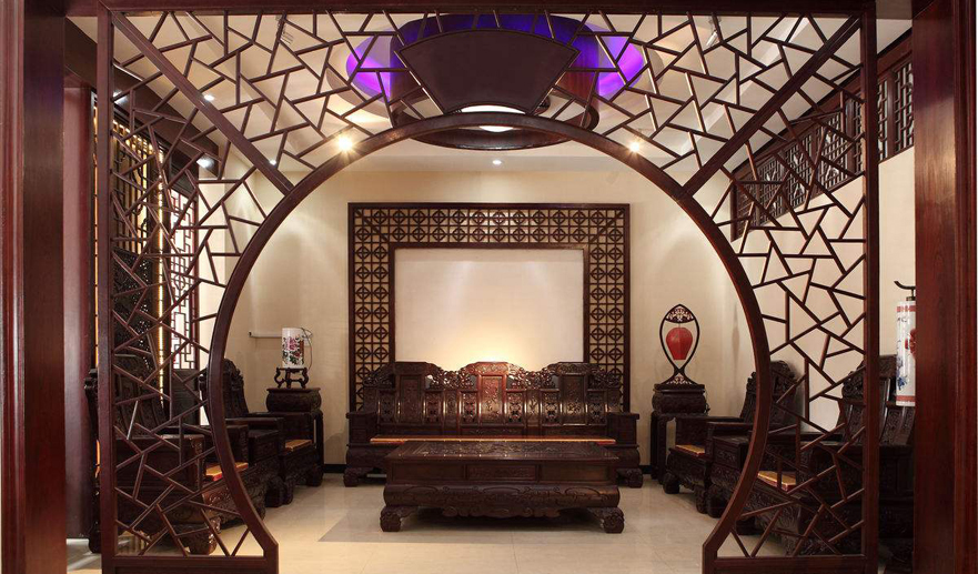 中國傳統居室非常講究空間的層次,喜用隔扇、屏風來分割空間。中式屏風多用木雕或金漆彩繪,這種屏風到舊貨市場買最好,也可定做。隔扇是固定在地上的,就需要定做。隔扇用實木做出結實的框欄以固定支架,中間用欞子、雕花做成古樸的圖案。如果居室比較開闊,就可以做成一個“月亮門”式的落地罩、隔扇,再配以精雕細刻的嵌花,它將成為居室中最引人注目的景點。